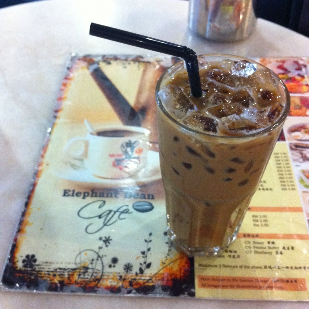 Ordered an iced coffee in the usual Nanyang-style (local Chinese term for South China Sea, aka Southeast Asia)–coffee with condensed milk and sugar.