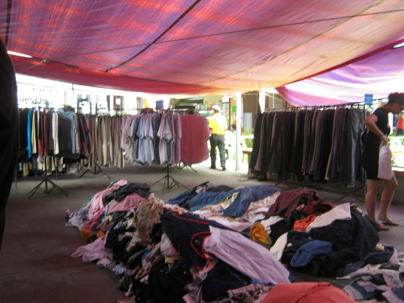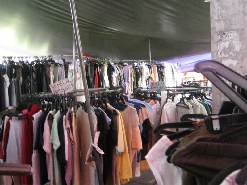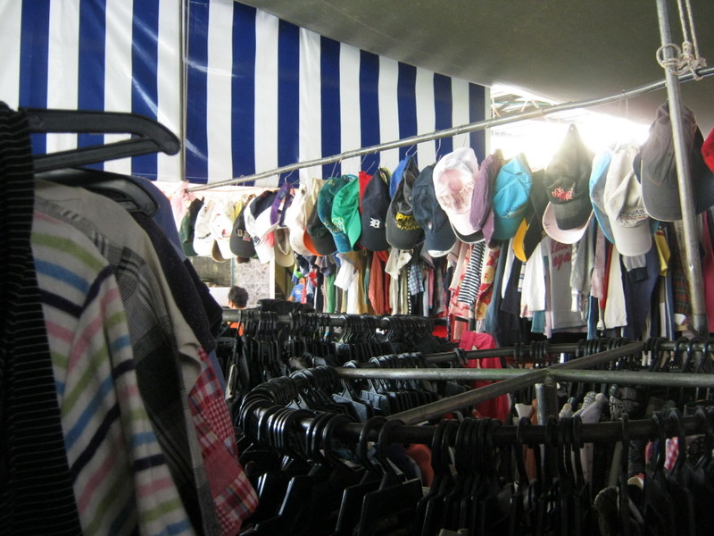 It’s really easy to recognize these stalls. The stalls are sheltered with plastic mat-roofs. There are many clothes hanging around, or on the groud on top of a mat. There’s also a musty clothes smell.