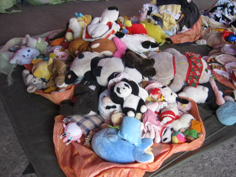 Where did ALL of those clothes come from? My mom suspect that they are actually come from donation centers overseas. That theory seems right because we have many Korean labelled clothes and even school bags with kids’ name on them.